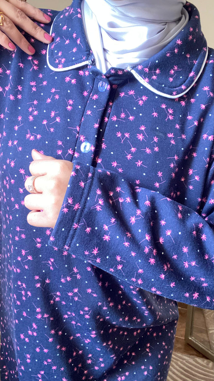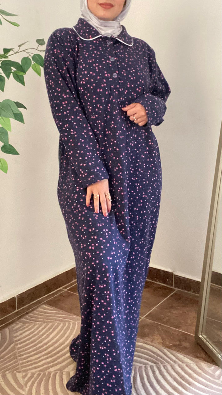 Stay warm and snug in this ultra-soft fleece night gown. Designed with a relaxed fit, long sleeves, and a front button closure, it’s ideal for lounging or sleeping on chilly nights.