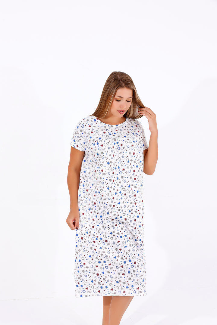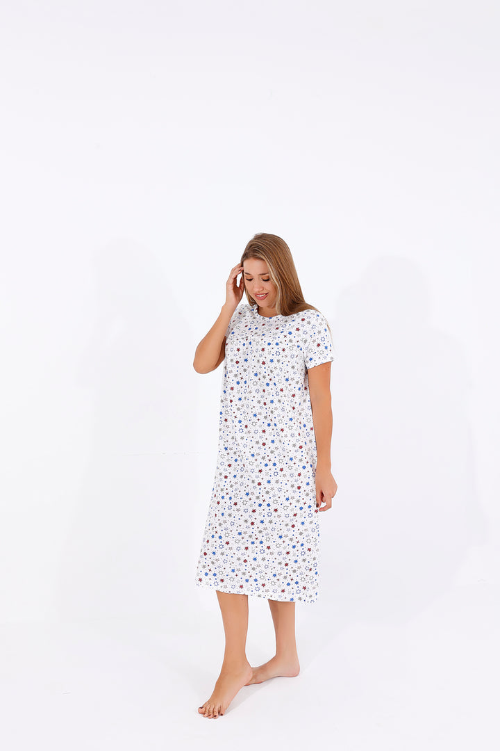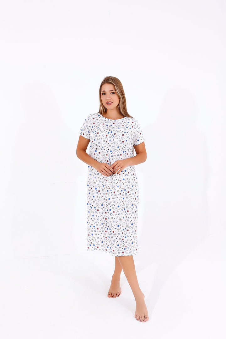 Indulge in pure serenity with our luxurious 100% Cotton half sleeve Night Shirt.